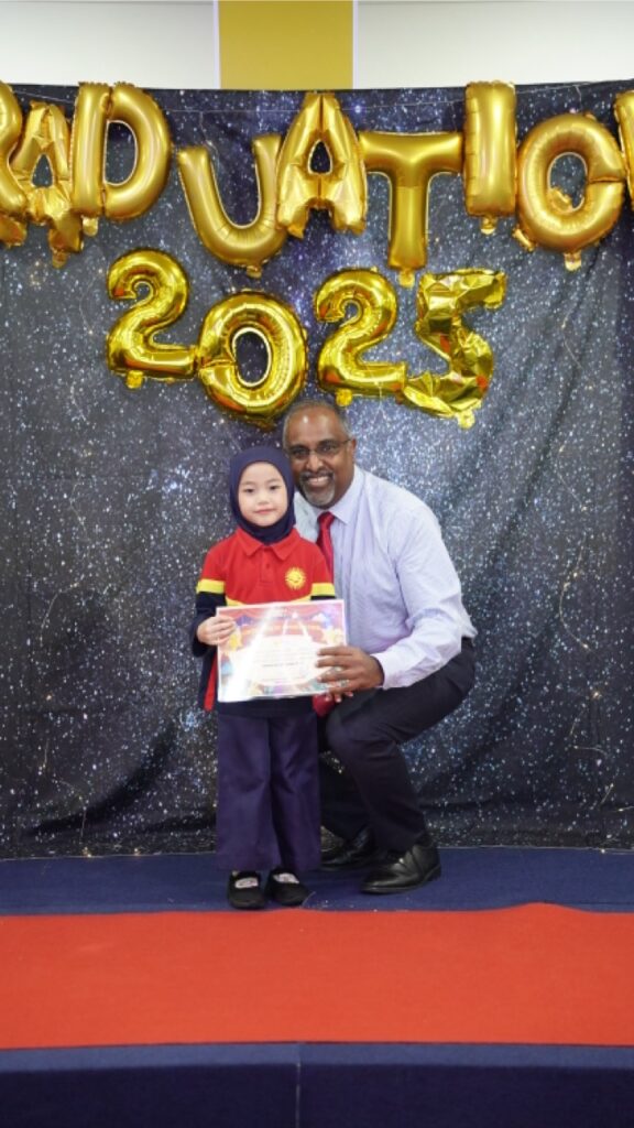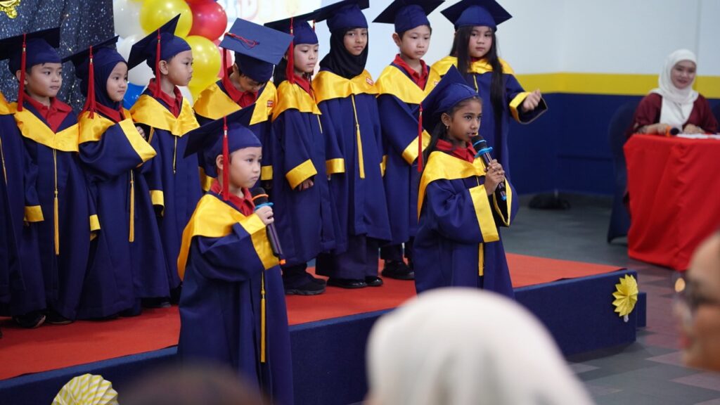 The ceremony began with an inspiring speech from our KG3 graduates, Mohammad Kaysan Malik bin Mohammad Tri Sutrisno and Koyagora Sniktha Reddy. They confidently shared their experiences, memories, and appreciation for their teachers and parents—setting a meaningful tone for the entire program.