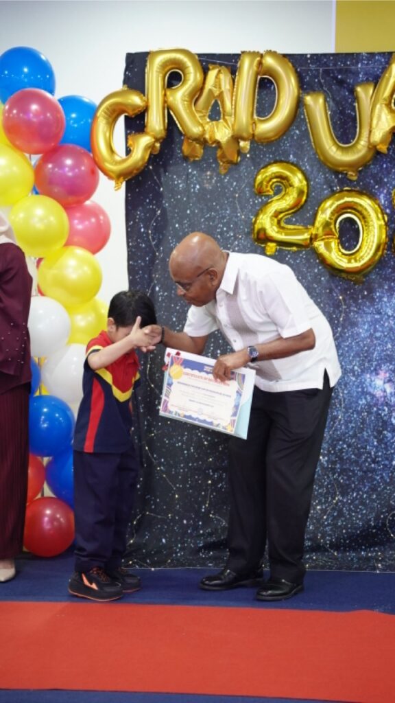 Our graduates confidently walked onto the stage with their class teacher, Teacher Yanie, to receive their certificates. Their bright smiles reflected their growth, confidence, and the many achievements they have accomplished throughout the year.